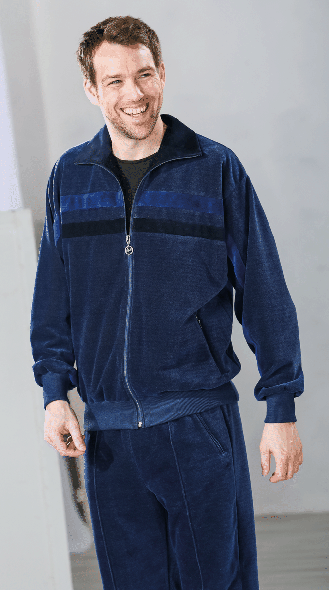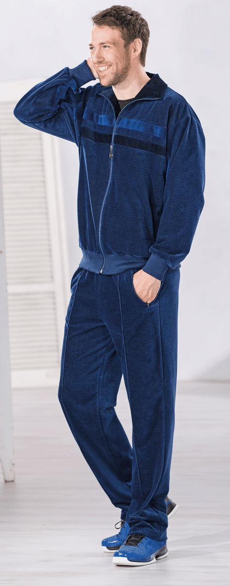 Die Jacke hat einen durchgehenden Reissverschluss und 2 Reißverschluss-Taschen mit jeweils Ruff-Anhänger. Ärmel und Bund mit elastischen Ripp-Bündchen. Die Hose hat einen weichen, elastischen Softgummibund mit innenliegender Kordel, zwei Reißverschluss-Taschen und ist mit einer Permanent-Bügelfalte versehen. Beinabschluss mit verdeckter Saumnaht. Die Qualität mit Klimafunktion ist äussert hautfreundlich, temperaturausgleichend und bietet höchsten Tragekomfort. Das pflegeleichte Material ist nach Öko-Tex-Standard 100 zertifiziert.